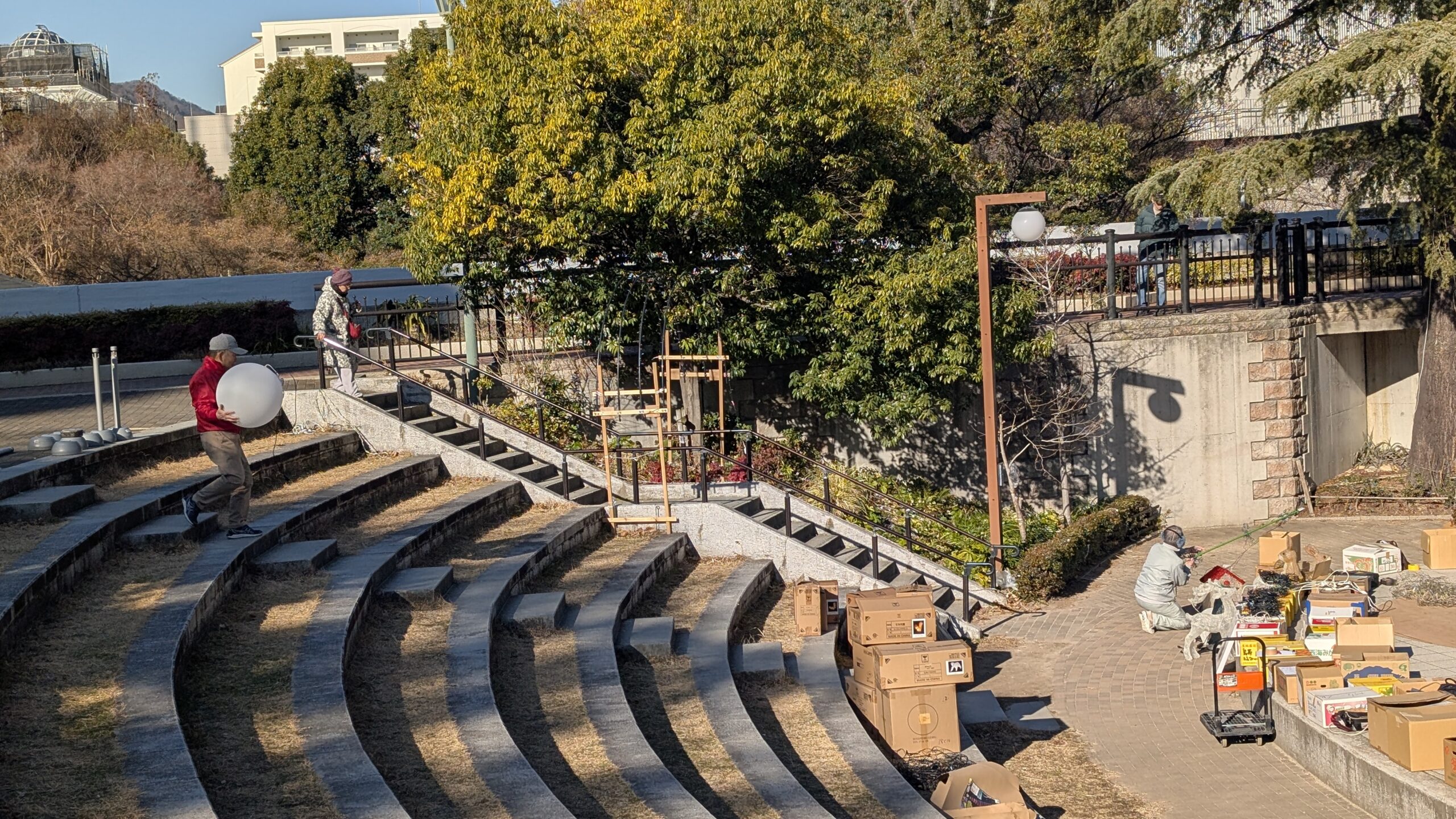 イルミネーションの後片付けをしていますと、ある住民の方から”大変楽しませていただきました、ありがとうございました”と言われました。又、点灯式のときは、設営の作業を外注に委託すれば300万円はかかるとの意見もございました。強風でオブジェが倒れる等、維持管理も大変でしたが、次回もより素敵なイルミネーションを設営できますよう一同頑張っていきたいと思います。